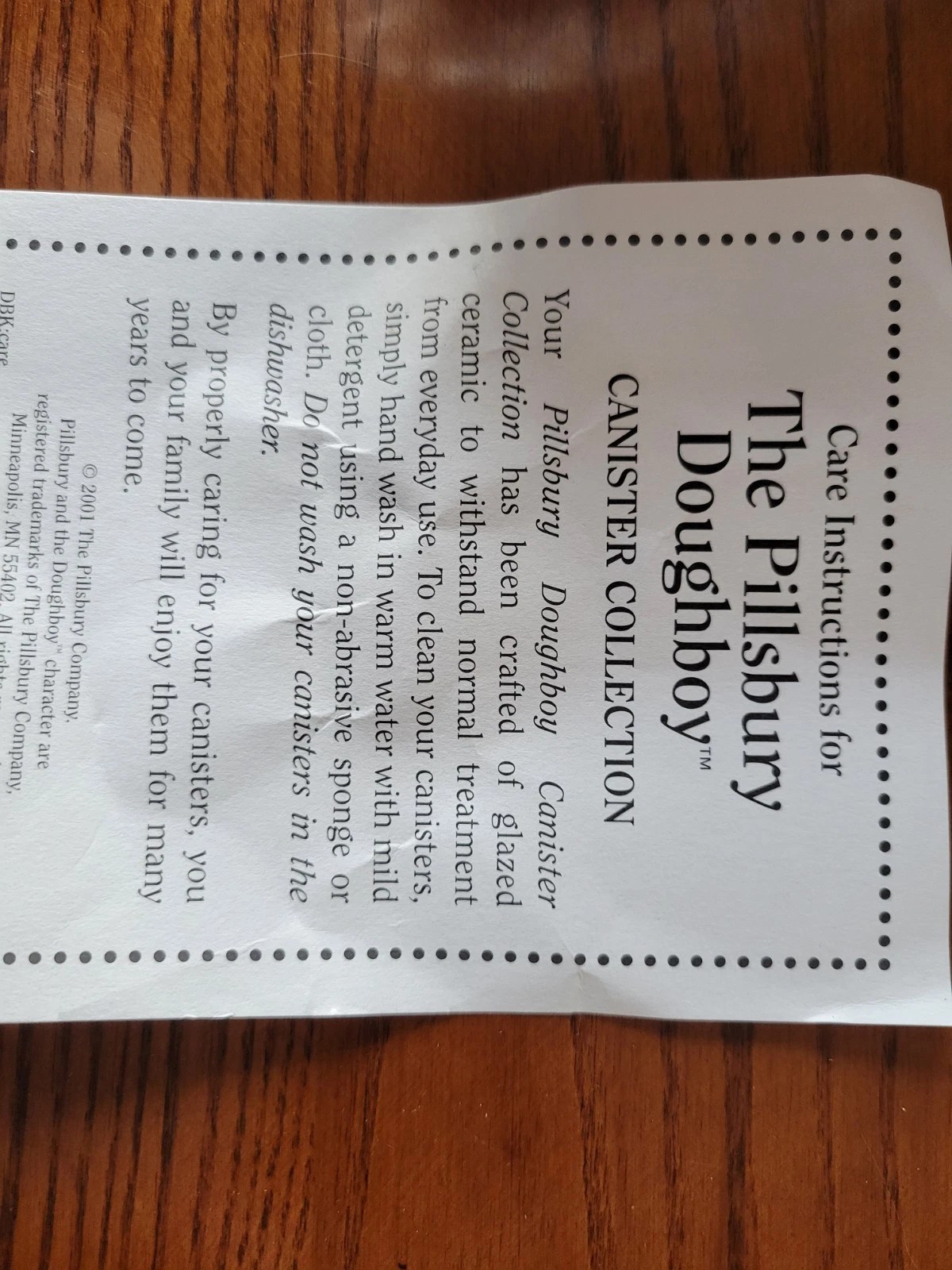 Comes complete with Care Instructions, and stuffed Pillsbury Doughboy which is new also with set. Great set for yourself or with the Holidays right around the corner would be a great gift.